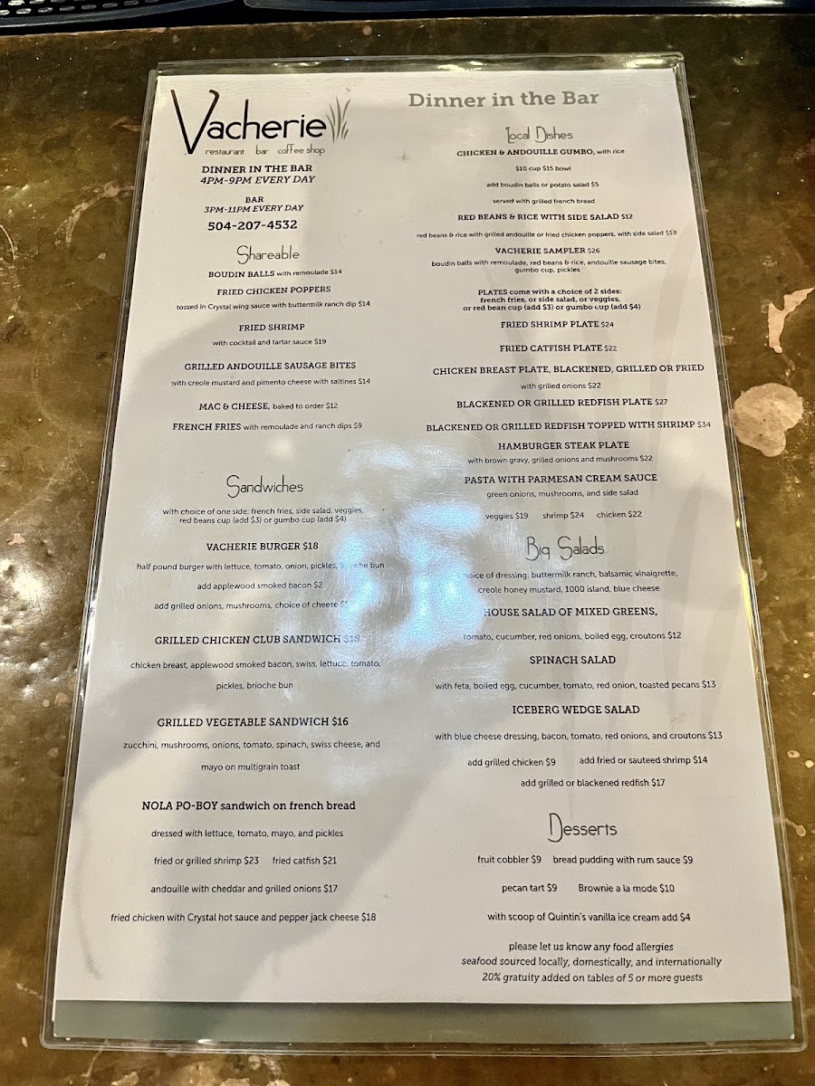 Boudin Balls, Andouille Sausage Bites, Red Beans & Rice, Gumbo Cup, Pickles